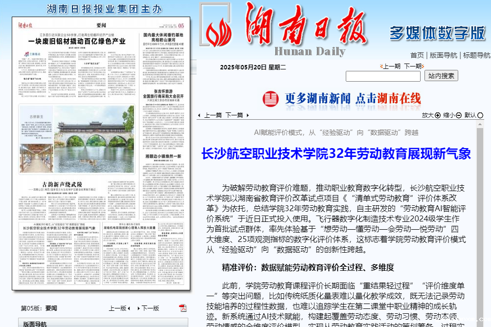 长沙航院党委书记朱国军表示,下一步学院将重点推进三项工作:一是基于师生使用反馈优化系统模块,增设职业精神成长档案、跨班级数据对标等特色功能;二是在保障数据安全的前提下,推动评价系统与学院教务管理、实习实训等平台对接,实现劳动教育数据的全场景贯通;三是提炼“AI+劳动教育”的实践经验,形成可复制、可推广的高职劳动教育数字化转型范本,为职业教育高质量发展提供新动能。